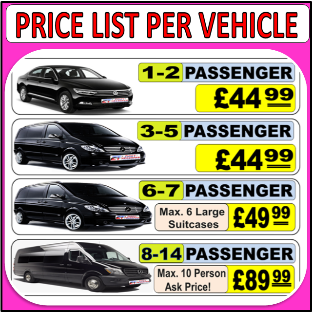 One way (single) private transfer £49.99 Return private transfer £89.98